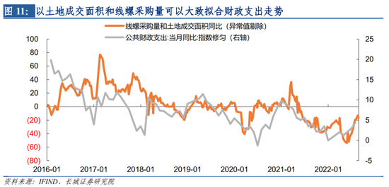 政府消费方面,政府消费支出占GDP比重约在15%左右。政府消费支出包括国防、行政管理、制定法律规章、维护社会秩序和环境保护、医疗卫生、教育、文化娱乐和社会保障等多方面花费的支出,其月度变化方差较大,以高频指标可能较难精确追踪。我们通过观察与筛选,线螺采购量、百城土地成交面积与公共财政支出的同比变化趋势较为一致,可以大致代替。我们将拟合的“政府支出同比”赋予政府消费在GDP中的比重。
