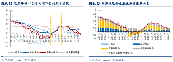 与之对应的是第二阶段,低基数效应叠加彼时我国经济和疫情形势边际好转,周期性服务价格上行带动了核心CPI同比的回升。