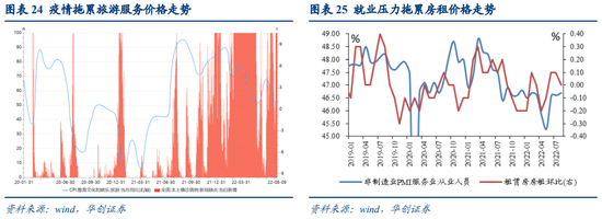 在周期性服务中,主要就是房租和旅游项,这也是与疫情和经济最直接相关的分项。在核心CPI同比回落的第一阶段和第三阶段,受疫情较为频发和防控政策偏严、经济下行和就业压力较大、居民收入增长乏力等因素影响,房租和旅游服务价格持续走低,带动周期性服务价格下行,进而拖累核心CPI走势。