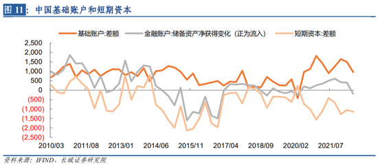 这种现象说明欧美两国国债价格下跌、美元升值不仅仅影响中国,也影响世界上其他各国。对于这种世界层面的外汇储备估值下降的现象,我们不必过于担心,只需继续观察自身国际收支的变化趋势以及警惕欧美利率的上升势头。中国在二季度也出现了国际收支差额转为负的迹象,短期资本流动的影响较为显著,我们下面进行深入分析。
