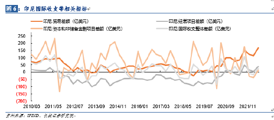 印尼的贸易差额自去年以来就持续扩大,这主要得益于原油和煤炭等资源品的出口猛增;在贸易顺差增加的带动下,今年经常项目差额也从逆差转为顺差;经常项目差额转正和金融项目转负,共同促使国际收支差额基本保持平衡,也不构成外汇储备下降的主因。