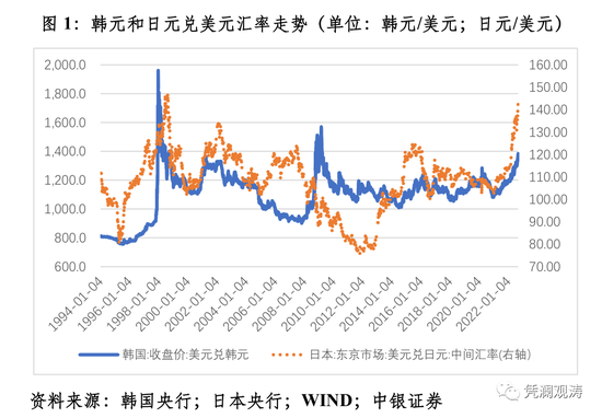 今年,主要亚洲货币中,日元与韩元成为“双子星”。到9月16日,日元对美元汇率累计下跌19.5%,跌至1998年来新低;韩元汇率下跌14.2%,也跌至2009年来新低。韩国会因为韩元贬值再现二十五年前的金融危机吗?本文拟就此进行探讨。