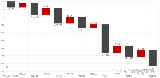 与上升周期一样,美国长期债券利率从1981年的15%降至2020年的0.5%也不是一蹴而就的。债券长牛行情中也经历了多轮中短期的熊市,其形成的逻辑基本可以看作是熊市逻辑的扭转。