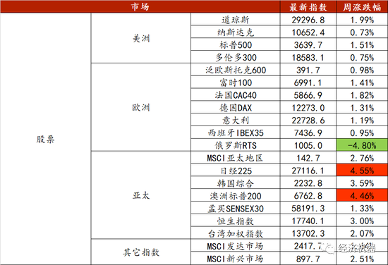 国庆期间外围股市涨幅(10.3-10.7)