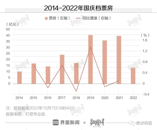 电影市场也十分惨淡。据灯塔专业版数据,2022年国庆7天,电影总票房预计约在15亿左右,2021年同期为43亿元,下降超6成。