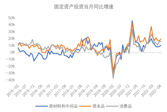 我们还是按照之前的研究分类,将工业企业分为三个部门:原材料和中间品、资本品、消费品。(具体分类方法见➡️7月出口超预期背后:下半年制造业投资形势如何?)在此基础上,我们考察不同部门的库存压力变化,并结合其他维度的指标来判断这种库存压力的来源和趋势。
