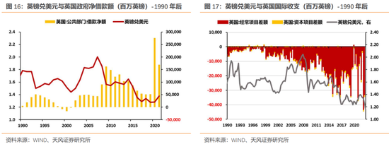 虽然在浮动汇率安排下,美元强弱对英镑汇率有重要影响,但2008年与2016年两次英镑贬值更多是英国本身的原因,其银行体系的脆弱性、以及市场对英国政府与经济前景信心的缺失,本身也在加速英镑贬值,从而返过来推升美元指数。
