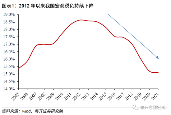 从减税降费的总体规模来看,据税务总局披露,2013年至2021年我国办理新增减税降费累计达8.8万亿元。2022年实施大规模增值税留抵退税等新的组合式税费支持政策,截至8月底,全国累计新增减税降费及退税缓税缓费超3.3万亿元。以税收收入/GDP衡量的狭义宏观税负,2021年我国宏观税负为15.1%,较2012年的18.7%下降3.6个百分点。