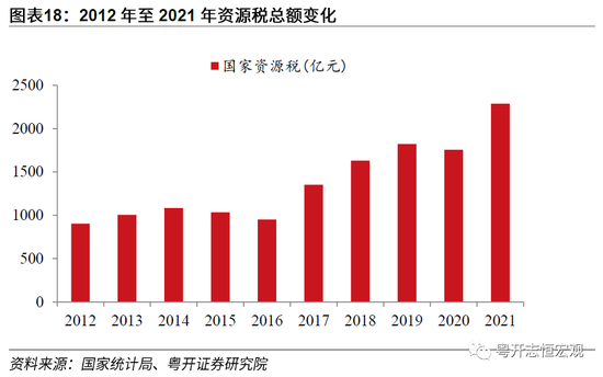 三是税收制度改革助力绿色环保,推动经济高质量发展。新时代,我国税制改革向服务高质量发展的方向进一步前进。通过资源税扩展至自然生态空间及环境税改革等方式,有效助力绿色发展方针。其一,资源税从价计征改革进一步推进,逐步将资源税范围扩展到水流、森林、草原、滩涂等自然生态空间。我国于1984年开征资源税。开征时,仅包含煤炭、石油和天然气三种资源税。经历数十年发展,2011年资源税征收范围进一步扩大。自2016年7月1日起,资源税改革全面推进。改革首先采取费改税方式在河北试点开展水资源税改革。改革中,地表水和地下水纳入征税范围,实行从量定额计征。在高质量发展的要求下,资源税是保护自然资源、调节级差收入、筹集财政收入的重要政策工具。资源税向自然生态空间的扩展不仅丰富了我国税收体系,更有利于促进资源节约利用。其二,推进环境保护税改革,企业超标排放率持续下降。2018年1月1日,环境保护税正式开征。据税务总局公布数据,2018-2021年,全国环境保护税税收年均规模保持在200亿水平。环境保护税主要以污染物实际排放量为征收依据,遵循“多排多征、少排少征、不排不征”的征税原则。环境保护税的改革进一步发挥税收了对生态环境保护、绿色发展的促进作用。2018年企业的超标排放率是11.3%,2020年已经下降到9.7%。