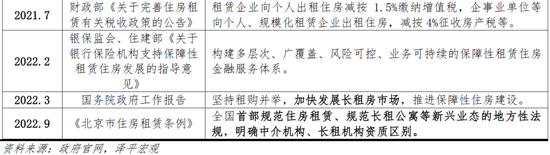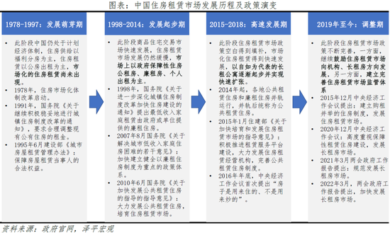 近年住房租赁市场迎政策利好,尤其是以分散式房为代表的机构化、长租房市场迅速发展,推动住房使用性的实现及增值。2015年前,住宅交易市场快速发展,但住房租赁市场发展滞后,以保障性住房与个人出租为主。2015-2018年,购租并举被提出,以自如为代表的机构化、分散式房快速发展。2019年至今,住房租赁政策持续密集出台,一方面鼓励支持住房租赁市场尤其是长租房市场发展,2021年、2022年政府工作报告提出“规范发展长租房市场”、“加快发展长租房市场”;另一方面住房租赁市场规范性监管政策逐步完善,如《北京市住房租赁条例》明确“中介机构”与“长租机构”工商资质的本质区别,让市场主体各司其职,助力租房市场更规范。