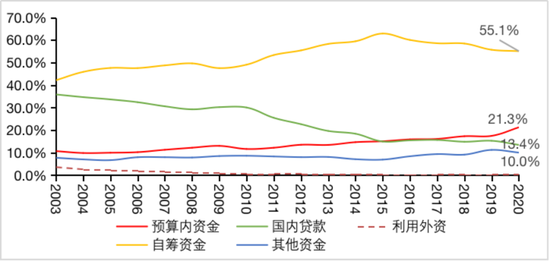 图8 2003年-2020年中国基础设施投资资金来源结构