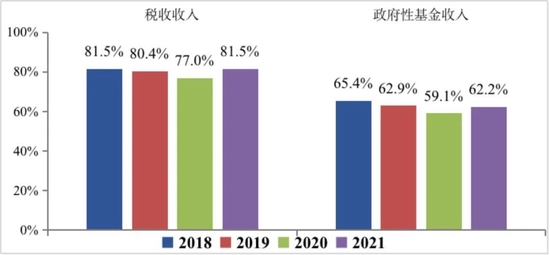 图3:近年税收和政府性基金收入1-9月累计值各自占其全年累计值的比重