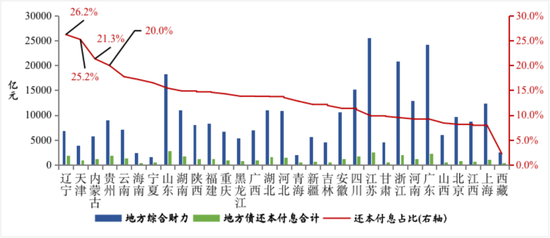 图2:2021年各省地方政府债券还本付息支出及占综合财力的比重