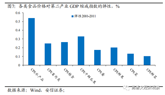 还可以进一步观察这些产品的价格与工业品价格的弹性。