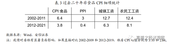 在此背景下,由于非食品部门劳动生产率增速相对更慢,工资压力开始通过价格上升显现出来,从而在经济增速、工资增速和非食品部门物价上升之间建立起稳定的联系机制。