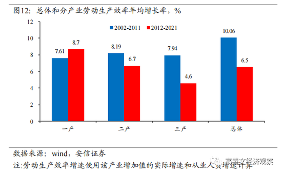 下图12显示了中国分部门的劳动生产效率的增长情况。