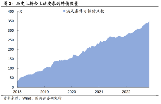 为了增加策略的实际可操作性,我们对基础池中转债作出如下要求:① 转债余额在 3 亿元以上;② 转债剩余期限在 1 年以上;③ 转债未发行强赎公告。回溯历史,我们可以得到 2018 年以来,每一个交易日满足条件转债,并形成基础池。