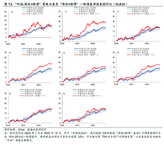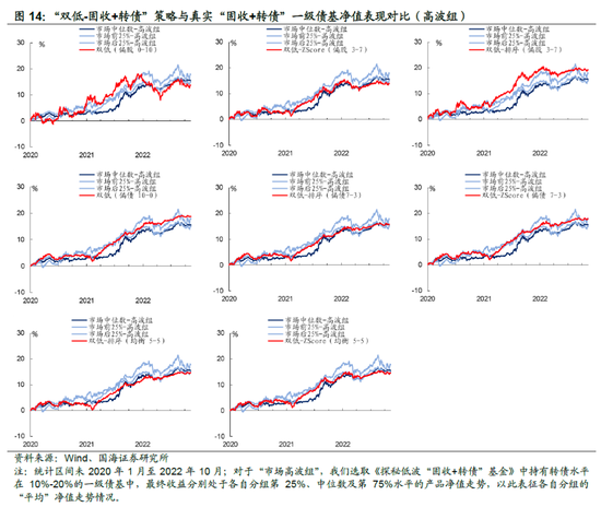我们在上期报告中将“固收+转债”一级债基, 按照转债持仓水平划分为 5%-10%、10%-20%以及 20%-30%三档“固收+转债” 基金。其中,又将每一档基金按照其长期波动属性划分成“高波组”和“低波组”。