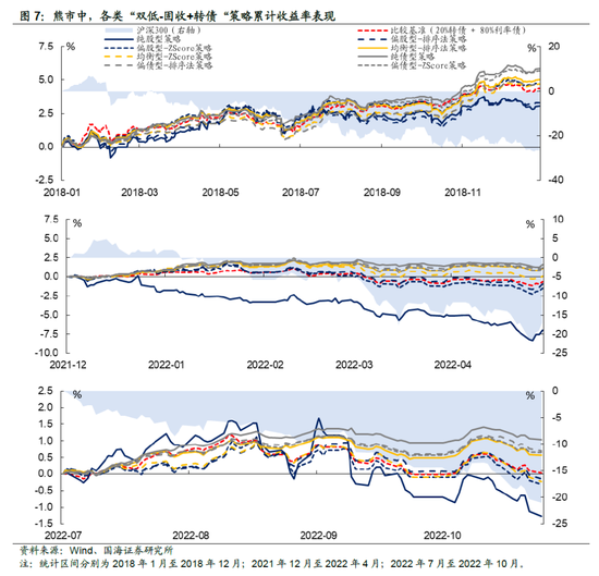 1)震荡市和熊市中,纯债型策略得益于其稳健的特性,在能留住收益的同时, 波动也不高,因而持有体验往往更好;