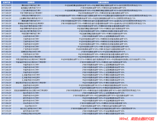 FOF型基金中,首先我们筛选业绩比较基准中权益指数(包括沪深300、中证800、恒生指数及中证偏股/股票型基金指数,下同)占比大于等于50%的FOF型基金,得出的所有权益类资产占比较高的Y份额基金如下:
