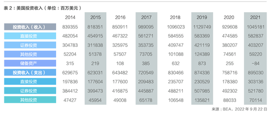 从BEA公布的数据来看,美国的投资收入在2007年开始出现明显增加,2010年到2020年美国的投资收入顺差基本保持在1500亿美元到2500亿美元之间,2021年有所回落,但依然接近2000亿美元。2008年到2020年美国投资收入顺差对GDP比大体保持在GDP的1%以上水平。