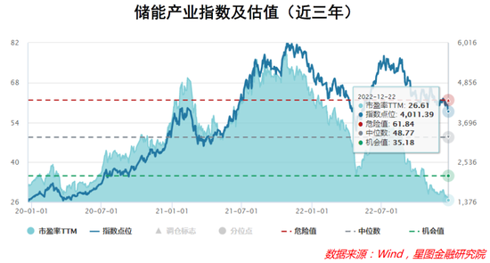 基本面之外,储能当前的估值也具有较高性价比。