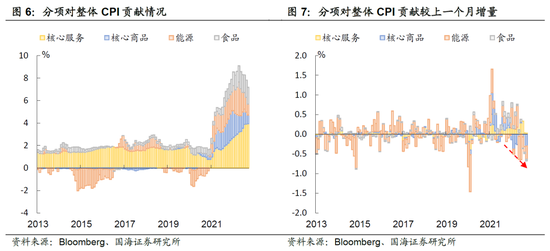 当下美国通胀的核心矛盾在于,全球加息共振下,大宗商品价格已经出现回落,在此格局下,近几个月来能源项和核心商品项通胀有所降温。而服务消费仍具韧性,尚未出现明显松动。