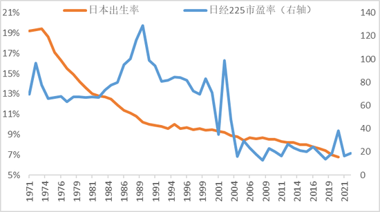 日本出生率日经225市盈率的走势图