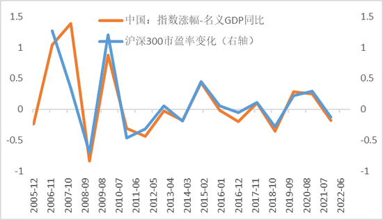 不妨用股指代表总体股票的价格变化,同时用名义GDP的增幅代表总体上市公司盈利的变化,则可以通过指数涨跌幅和名义GDP增幅数据来估算股指的市盈率变化,从而倒推出历史市盈率。