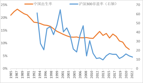 中国出生率与沪深300市盈率的走势图
