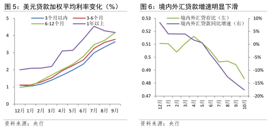 不过,展望2023年,在全球经济衰退征兆愈发明显的情况下,美元指数仍有较大幅波动的可能,届时人民币或再度面临一定贬值压力。同时,随着美联储加息峰值可能抬高,境内美元贷款的吸引力会进一步下降,相反高利率叠加美元升值预期或使得美元存款的吸引力上升,可能加剧银行美元资产负债表的失衡。
