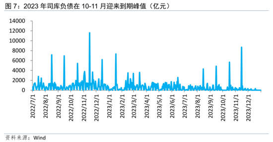 三是2023年银行司库负债在10-11月迎来到期峰值,需要降准等操作来减缓负债端压力。2022年10-11月,同业存单利率“非理性”上行,就是在司库负债集中到期压力下,市场“有价无量”,造成机构竞相提价,形成“羊群效应”,伴随着央行降准等“外力”介入而逐步稳定。