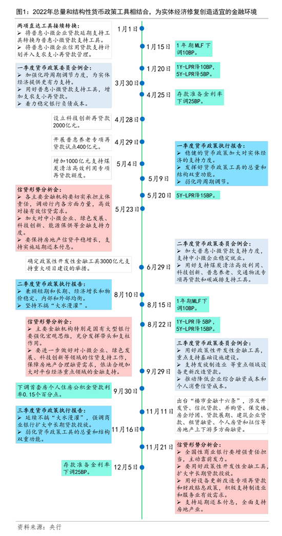 2022年,面对疫情多发散发、房地产周期下行、俄乌危机、海外持续加息等超预期因素冲击,我国经济下行压力和金融市场扰动加大。为统筹疫情防控和经济社会发展,一揽子稳经济政策不断加码,货币政策保持稳中偏松基调,综合运用降准降息、政策性开发性金融工具、结构性再贷款工具等稳增长举措,对经济修复形成有效支撑。