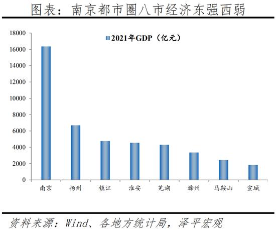 2.7 南京都市圈:经济东强西弱,首个跨省都市圈惠及皖东四城