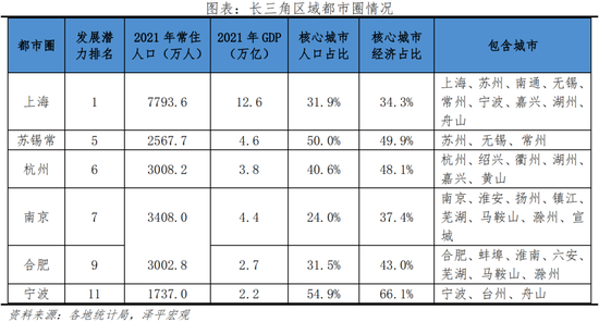 2.1 上海大都市圈:长三角城市群的“强核”,辐射周边都市圈