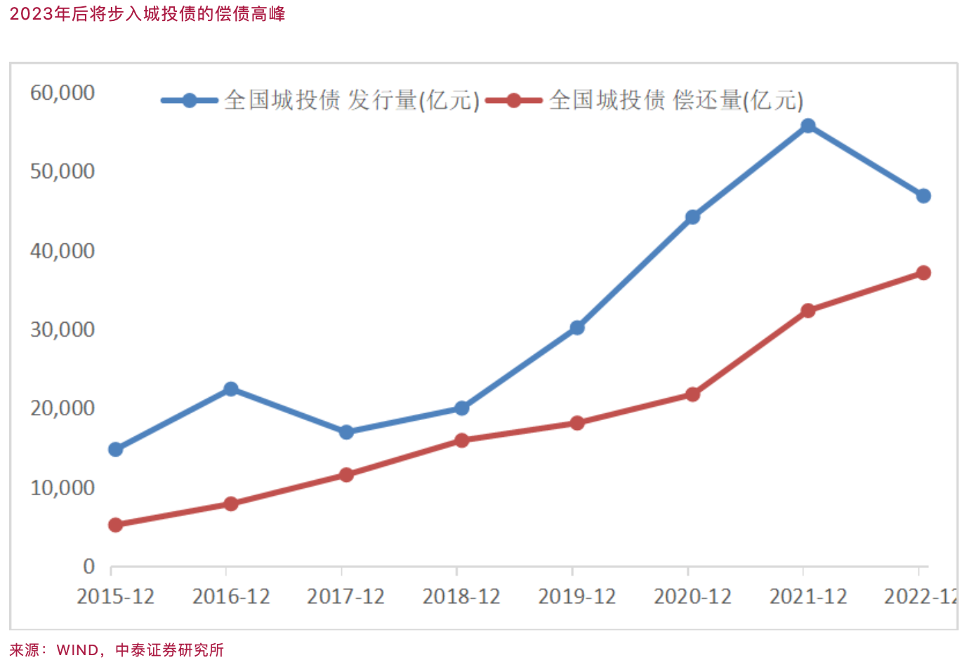 2022年1~10月,扣除留抵退税因素后税收收入同比仅增长2.4%;1~11月,国有土地使用权出让收入51174亿元,比上年同期下降24.4%。按照债务率指标计算,2021年末地方政府总体债务率已经突破100%达到105.8%,2022年估计仍将上行,因为疫情期间,放松了城投债发行,城投债净融资额大幅上升,接下来城投债到期偿还的压力较大。