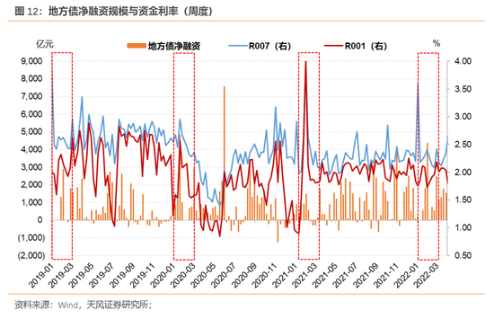 细化到周度,2019、2020和2022年地方债在1月开始发行,2021年地方债在3月开始发行,开始发行后资金利率短期可能有局部收敛压力,当然要结合春节等因素合并考虑。