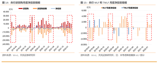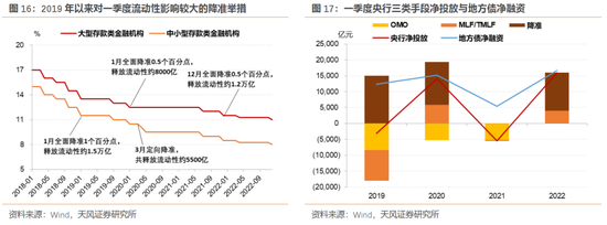 如果把逆回购、MLF/TMLF、降准三项手段综合来看,从货币总量上对冲地方债流动性挤出的最好手段还是降准。2019年和2020年一季度均有降准;2022年一季度虽然未降准,但此前12月已经降过一次,且后续央行上缴利润也相当于起到了降准投放货币的作用,实现了货币对财政的支持。