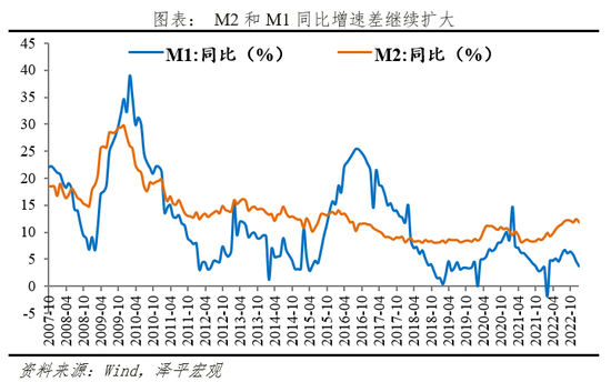 12月M1同比增速3.7%,延续回落0.9个百分点,M2与M1剪刀差持续扩大。12月份防控政策调整,短期冲击线下经济,导致实体经济活跃度下降,且今年以来居民存款定期化趋势明显,导致M2与M1增速持续背离。未来随着经济恢复,企业融资需求将逐步改善。