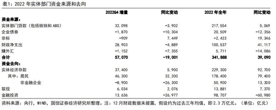 2022年四季度和全年实体部门资金来源和去向结果见表1: