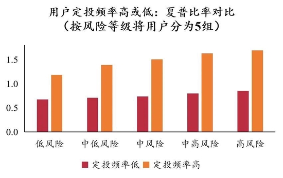 最后是择时和交易行为。个人投资者有很多非理性行为,比如追涨杀跌、过度交易。而互联网财富管理平台有定投功能,可以让投资者不集中投资于某一时点,同时帮助投资者避免随意的不理性交易。根据我们的研究结果显示,选择使用定投服务的投资者(相比于不使用定投的投资者),每年收益率高2%左右。