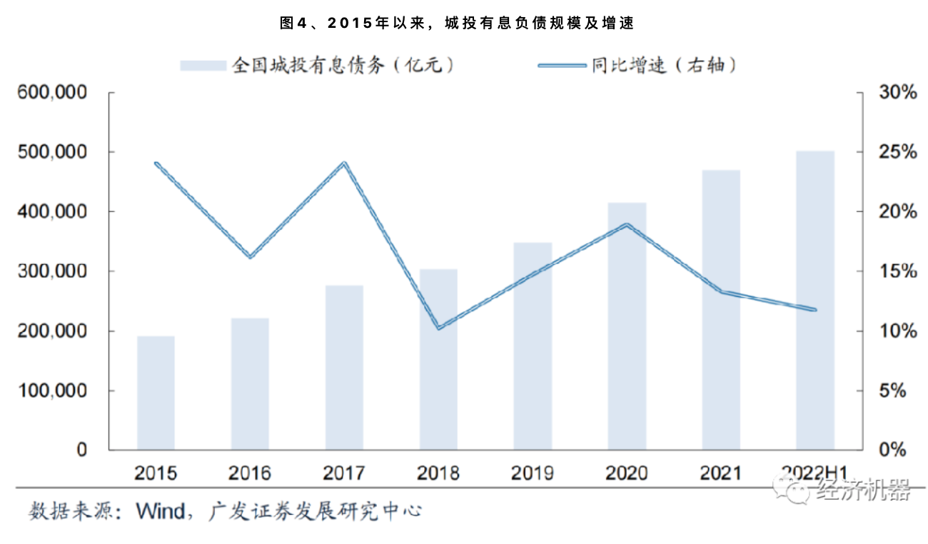 如2018~2020,中美贸易摩擦叠加疫情冲击,城投债务增速持续提升。这些均从侧面强化了“城投信仰”。因此,城投信仰短期可能弱化,但很难完全消失。