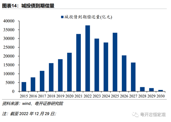 一是房地产风险引发的财政冲击。(1)冲击房地产相关税收及土地出让收入,土地出让收入可能较2022年减少2.6万亿元左右;(2)房地产行业风险化解需要财政支持,增加地方政府救助责任。7月13日,绍兴市镜湖新区开发建设办公室:“省里有明确规定,无论开发商出现任何问题,政府有责任确保交付。”7月19日,河南国资委旗下河南资产与郑州国资委旗下郑州地产集团共同成立地产纾困基金。(3)房企面临较大的偿债压力。房企将迎来偿债高峰,尤其是境外债偿还压力较大。截至2022年10月31日,房企未来一年内到期的信用债余额3851亿元,海外债余额4074亿元(568亿美元),合计7925亿元。2023年1月、4月房企迎来阶段性偿债高峰,到期量分别为958亿元和888亿元。其中,境外债的偿还压力较大,未来一年到期余额占比达到51.4%。美元加息将推升房企海外融资成本。