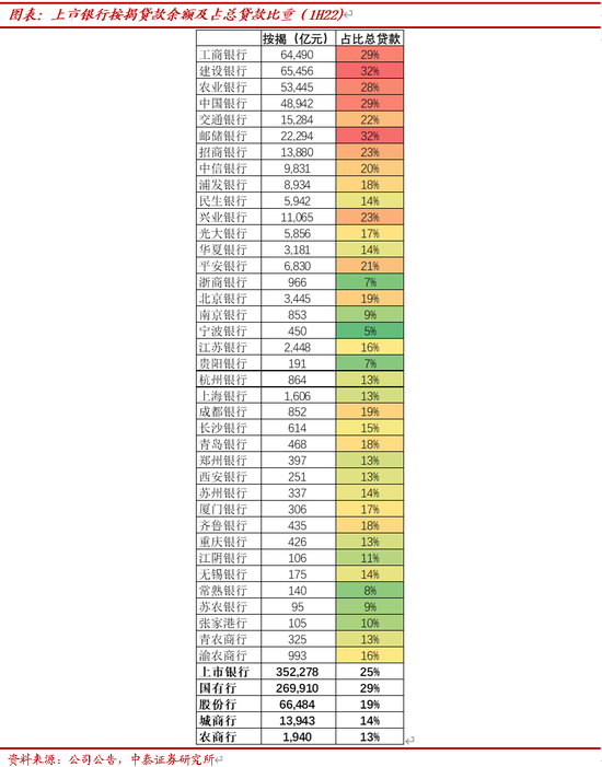 零售贷款资本占用测算缓释0.24%:1、针对个人住房抵押贷款,按照存量房贷首套比例90%,LTV70%左右,二套比例10%,LTV30%左右,分别对应权重由50%下调至45%和40%。余额方面我们以1H22上市银行个人按揭贷款余额为基础。2、考虑信用卡贷款风险权重由75%下降到45%,余额方面我们以1H22上市银行信用卡贷款余额为基础。