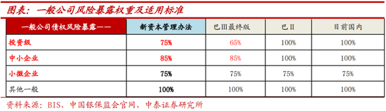 基本沿用巴Ⅲ最终版内评法调整,与巴Ⅲ最终版资本底线72.5%保持一致,低于现行的80%。