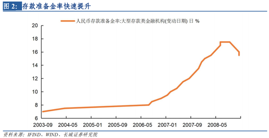 2000年到2007年期间,改革开放叠加WTO为我国带来巨大的贸易顺差和外商直接投资(FDI),投资增长带动经济过热,这一期间我国经济快速增长。在外向型经济体系下,外汇占款成为了基础货币投放最主要的渠道,为满足外汇的兑付需求,央行也被动地向市场投放了过多的基础货币,使得货币政策违背了逆周期的原则。防止经济增长由偏快转为过热甚至开始显现的通货膨胀,央行着手实行稳中从紧的货币政策。
