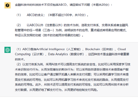 因为后面要分析它对保险的影响(注意不仅仅是保险行业),接着我们看看ChatGPT的金融保险能力,这方面确实是个优等生。我使用了不同学科的规范试卷(经济学基础、金融学、保险学等六门课程试题)并与学生人工作答的试卷进行了比对,最后的结论是:如果不考虑金融中的数学知识,ChatGPT基本上可以达到研究生的水平,所以国外英文评测ChatGPT通过MBA考试是毫不稀奇的——英文语料决定了其英文水平更强大,所以ChatGPT在中文生成使用了P-翻译技术提高可用性。