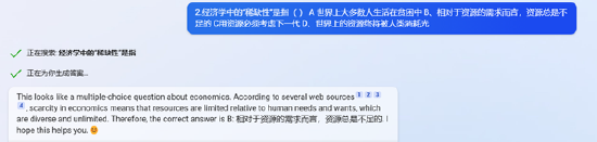 补充的第二点,New Bing使用GPT4要比ChatGPT(GPT3.5)效果更好,例如对于经济学题目判断更加准确。