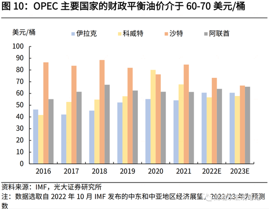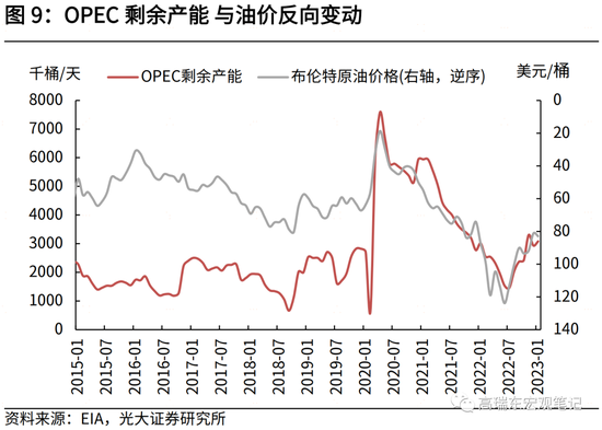 一是,当前全球原油闲置产能主要集中在OPEC国家,其通过产量调节,能够有效控制油价。鉴于其维护财政平衡的诉求,挺价意愿较强。若未来需求过快回落,OPEC大概率采取减产挺价措施。