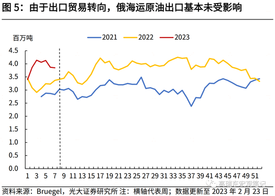 去年下半年以来,由于欧盟对俄制裁存在缓冲期,加之俄罗斯原油贸易流多数转向亚洲,俄罗斯原油出口和产量基本未受影响。